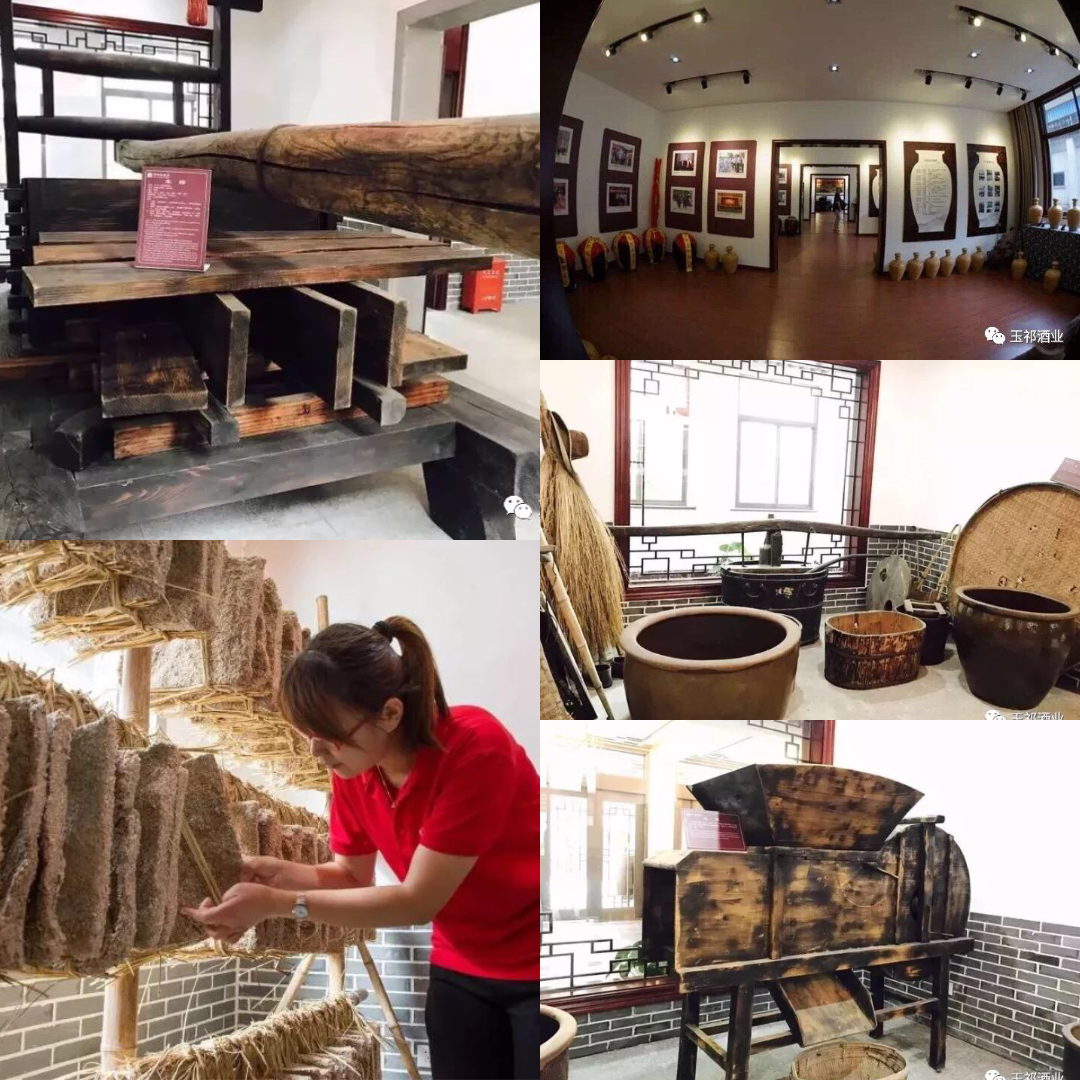最后來到雙套酒技藝展覽館,這里有木蒸、濾漿架、濾漿桶、拌酵缸、裝曲小笆斗、制曲箱、壓榨墜石等一大批實(shí)物器具,結(jié)合兩邊墻上一張張的圖片資料,生動(dòng)形象地將玉祁雙套釀酒的歷史、操作過程等原汁原味地呈現(xiàn)了出來。