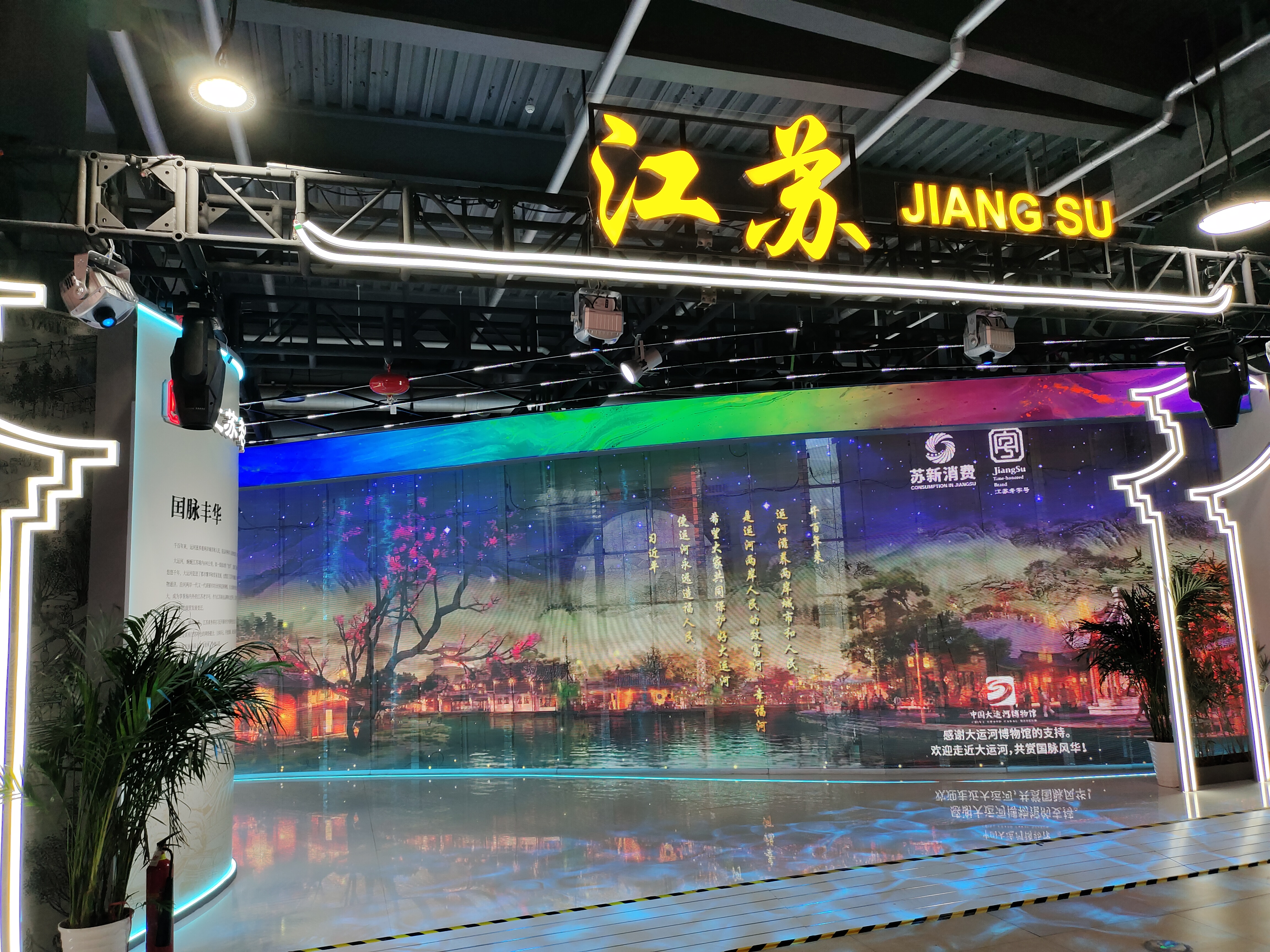 運(yùn)河通達(dá),商賈流轉(zhuǎn)云集;古往今來(lái),老字號(hào)各領(lǐng)風(fēng)騷。在本次進(jìn)博會(huì)人文交流活動(dòng)中,江蘇交易團(tuán)以江蘇運(yùn)河商貿(mào)文化為主線,呈現(xiàn)“國(guó)脈豐華蘇新消費(fèi)”的主題。相關(guān)展示以時(shí)間為軸穿越古今商貿(mào)變遷,以空間為序溯源運(yùn)河南下,以產(chǎn)品為面領(lǐng)略老字號(hào)風(fēng)采,搭建“楚風(fēng)漢韻、余味淮揚(yáng)、金陵風(fēng)雅、吳風(fēng)流長(zhǎng)”四大板塊,帶領(lǐng)觀眾漫步在運(yùn)河邊,移步換景,河為線、城為珠、線串珠、珠帶面,突出城河共生、商貿(mào)繁榮的特征。