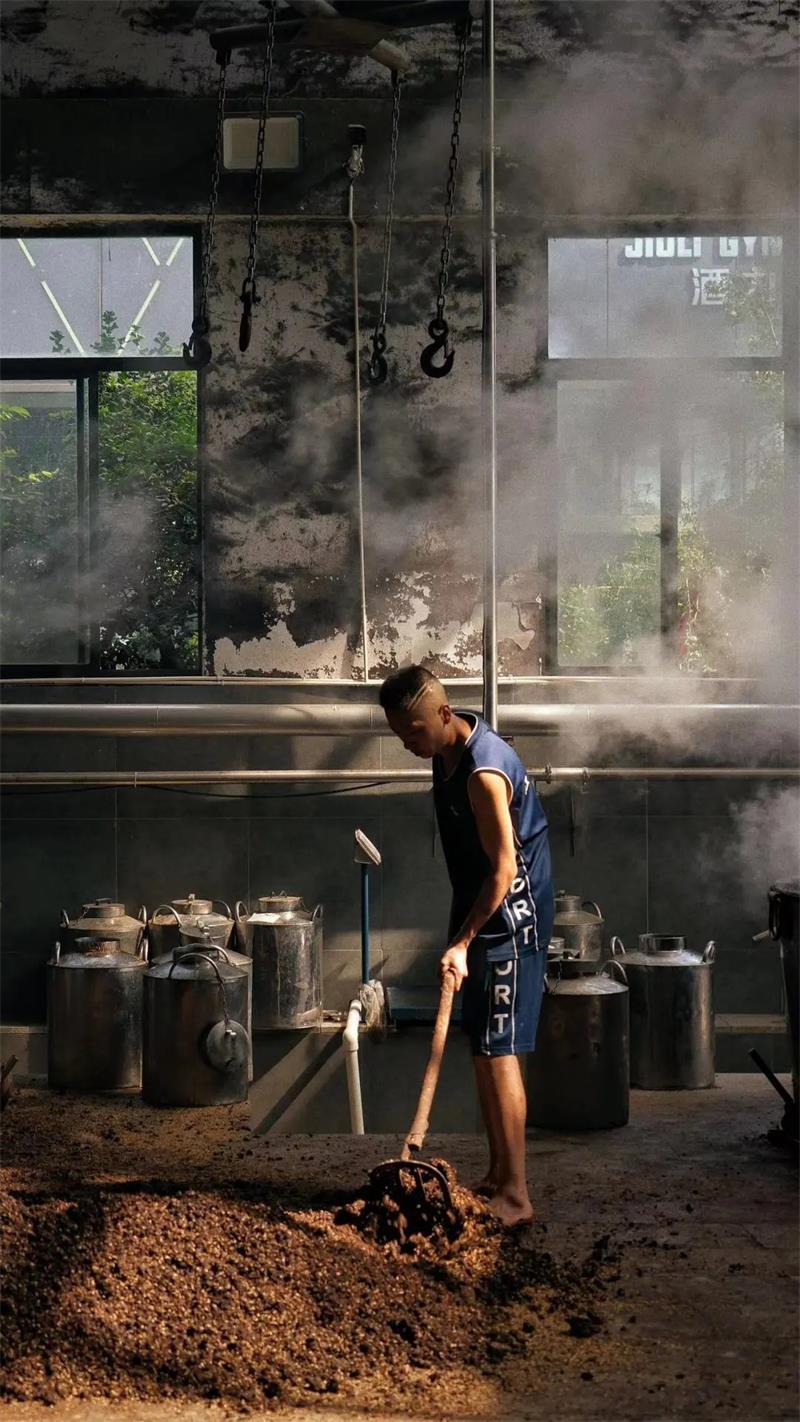 程,釀制純糧優(yōu)質(zhì)白酒,廠房?jī)?nèi)呈現(xiàn)出一