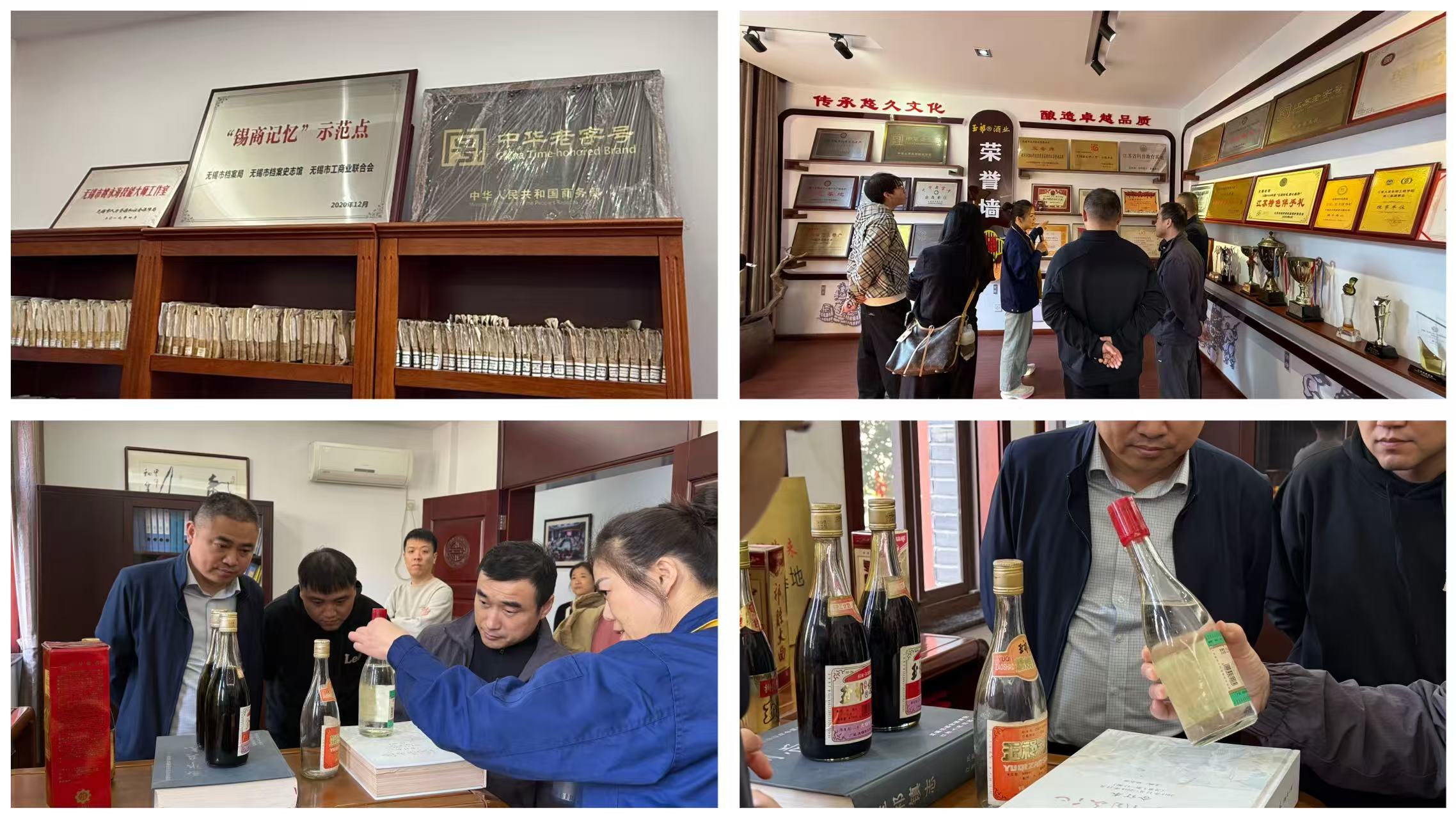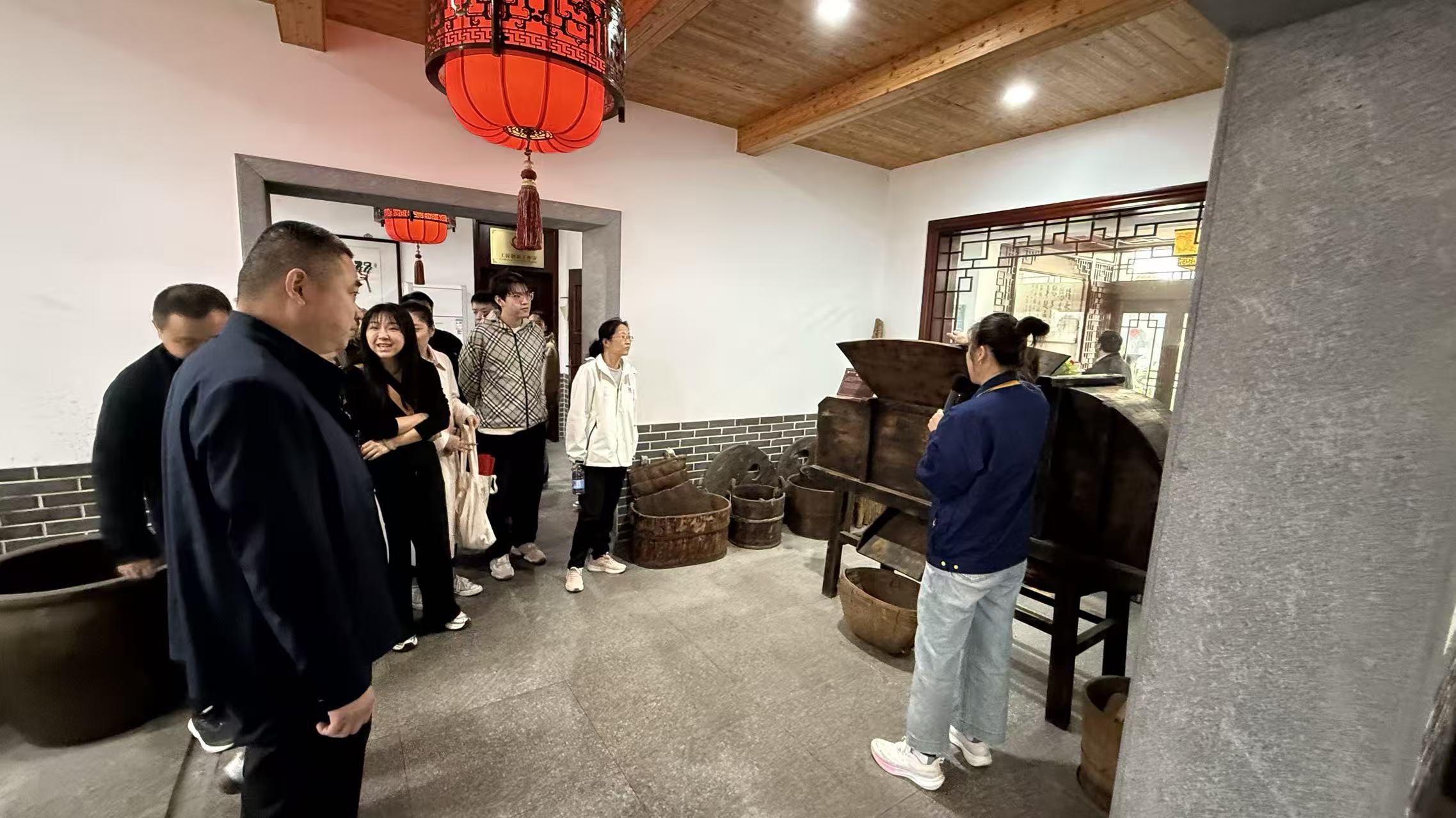 走進玉祁酒業(yè),古色古香的釀酒作坊與現(xiàn)代化生產(chǎn)車間交相輝映,空氣中彌漫著醇厚的酒香。在企業(yè)工作人員的帶領下,黨員們先后參觀了雙套酒釀造技藝展示館、企業(yè)展覽館、釀造車間、江南醬香酒體品鑒中心等場所。從明清時期的釀酒器具、古早的酒標標識,到如今的非遺釀造技藝展示,一幅幅珍貴的歷史圖景、一個個生動的生產(chǎn)場景,全方位展現(xiàn)了玉祁酒業(yè)百年的傳承與發(fā)展。